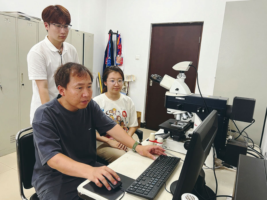 张敏(左一)指导学生进行金相实验 ■ 受访者供图